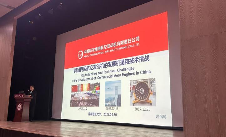 2025年4月30日,我国航空发动机领域泰斗级专家、中国航发商发公司特别顾问、宽体客机发动机工程技术总监冯锦璋博士应邀在昆明理工大学伍集成会堂做题为“中国民用航空发动机的机遇与挑战”的学术讲座。学校冶金与能源工程师学院、材料科学与工程学院、民航与航空学院、卓越工程师学院等相关院系的师生代表300余人参加活动。